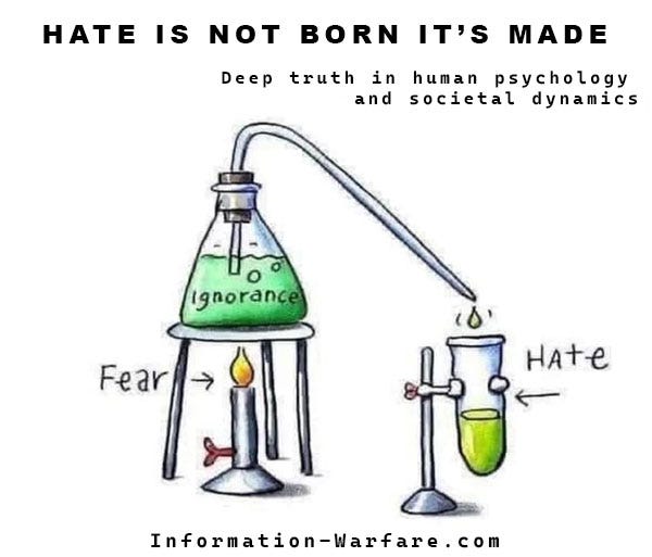 In an age of rapid communication, political polarization, and rising global tensions, the anatomy of hate remains largely unchanged. A simple but profound image circulating online recently distilled this enduring truth into a metaphor so effective it could be taught in classrooms and debated in parliaments: Ignorance + Fear = Hate.