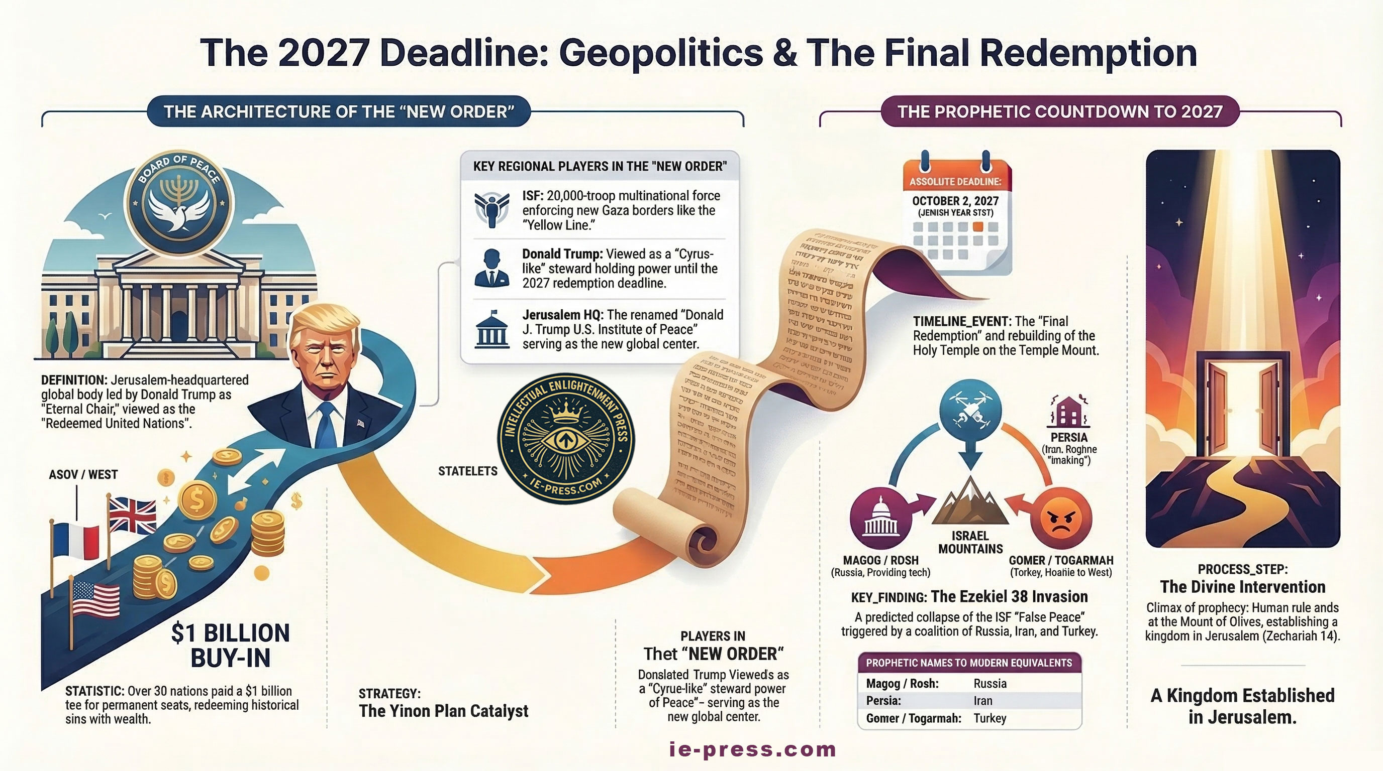 In the landscape of 2026 geopolitics, the traditional boundaries between secular policy and religious eschatology have undergone an ontological rupture. The establishment of the Board of Peace (BoP) in early 2026 was not merely a diplomatic pivot; it was a transition into a reality that feels increasingly like a “scroll unfolding” in real-time. For the first time in the modern era, the line between the West Wing’s tactical briefings and the “End of Days” has thinned to the point of transparency. We are no longer merely observing the “Art of the Deal”; we are witnessing a geopolitical structure designed to facilitate what many believe is the final act of human history.