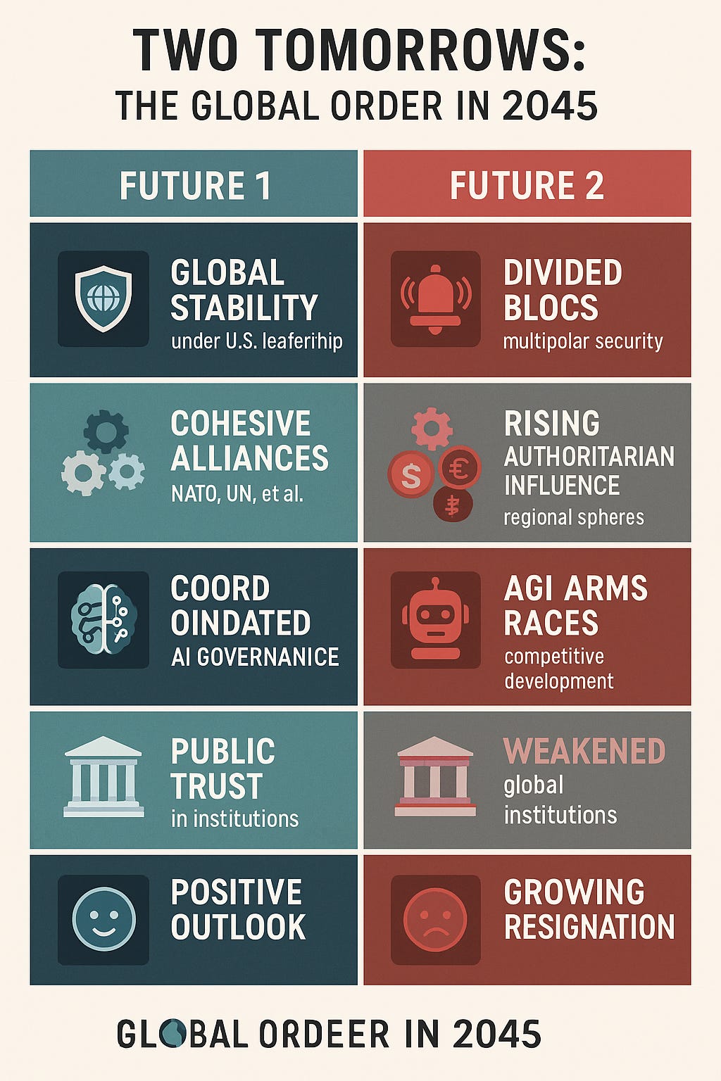 A fragmented, adversarial, mistrust-driven world. Global order becomes a contest, not a consensus.