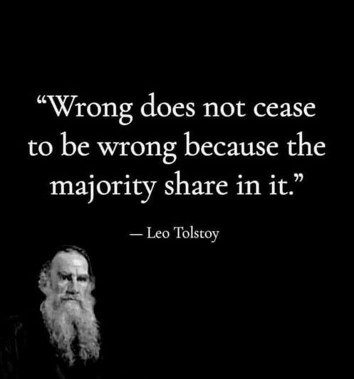 The nature of right and wrong is not determined by popular opinion or the number of people who support a particular view or action.